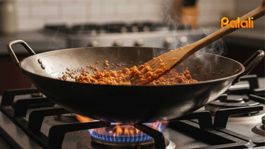 - Tambahkan air sedikit demi sedikit (jika perlu): Jika bumbu terlihat kering, tambahkan sedikit air atau minyak agar tidak gosong.