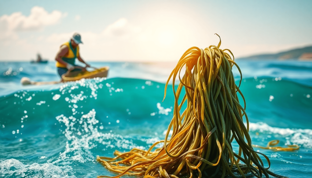 Seaweed farming occurs in coastal areas, often utilizing sustainable practices. Farmers cultivate various species of seaweed, which are then harvested based on optimal growth cycles. This process requires careful monitoring to ensure quality and yield.